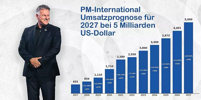 PM International, a renowned network marketing company, has showcased extraordinary business potential in 2023, raking in a commendable revenue of $3,030 Million. For 2024 we estimated sales at $3,350 – 3,600+ Million.